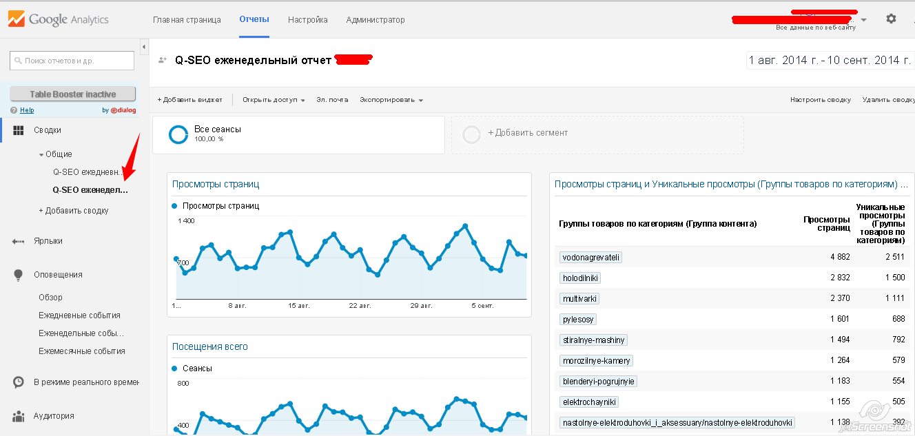 Посмотреть в отчетах данные по группам контента можно в группе отчетов «