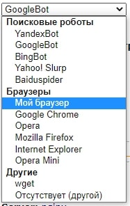 С помощью этого сервиса можно посмотреть код ответа не только для вашего браузера, но и для различных поисковых ботов и браузеров. Зачастую это бывает очень полезно.
