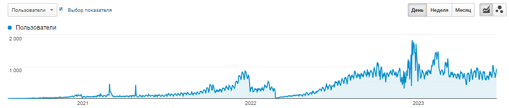 Первый год сайт показывал положительную тенденцию к росту, но она была достаточно низкой. Ввиду того, что сайт был абсолютно новым, а ниша конкурентная, сайту потребовалось время, чтобы показать более высокие результаты.