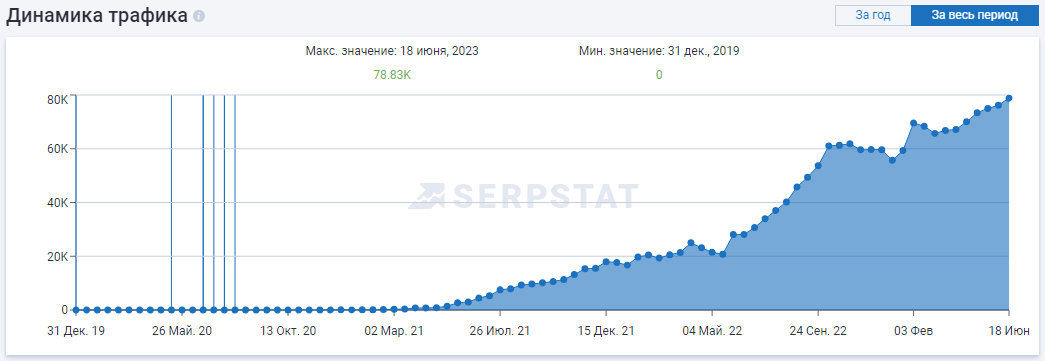 - По данным сервиса Serpstat.com видимость сайта в Google выросла с 0 до 22.