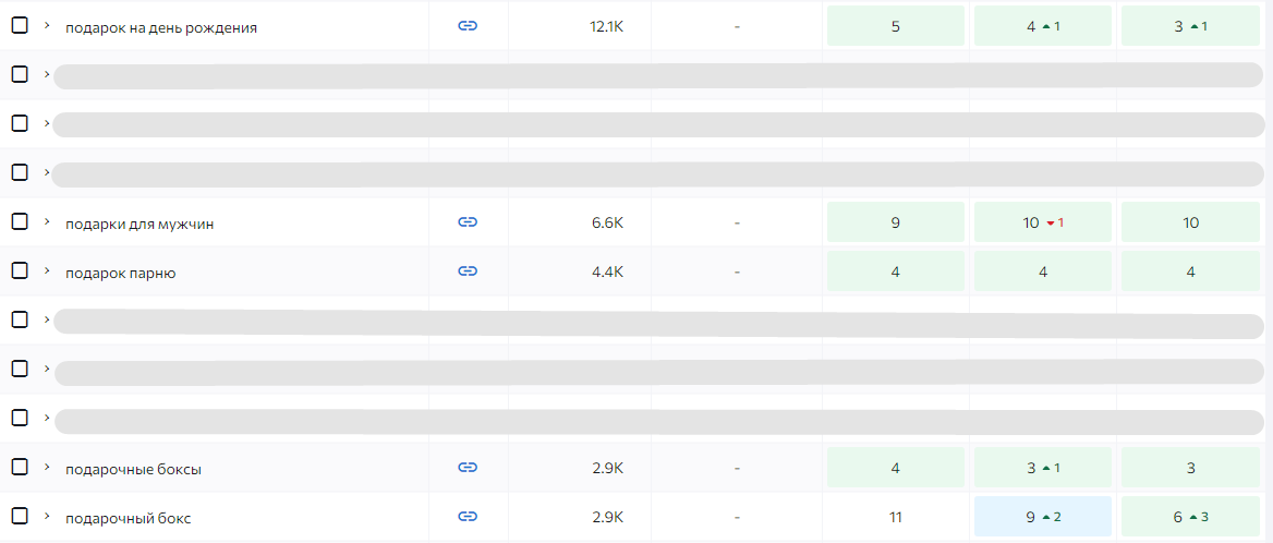 Вывести сайт в ТОП 10 по основным ключевым запросам приоритетных категорий, например, «интернет-магазин подарков», «подарки для мужчин», «подарки на день рождения» и другие. Параллельно расширить охват поисковых запросов и улучшить позиции сайта по ним, для обеспечения постоянного органического трафика и конверсий.