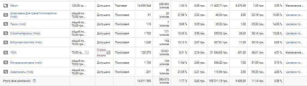 Таким образом, стоимость конверсии для, казалось бы, не дешевой кампании — реклама стройматериалов — снизилась до 9,69 грн.
