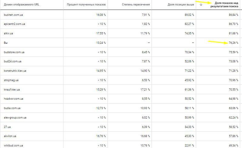 К тому же, получили низкую степень пересечения ключевых слов с конкурентами, что так же положительно влияет на стоимость клика.