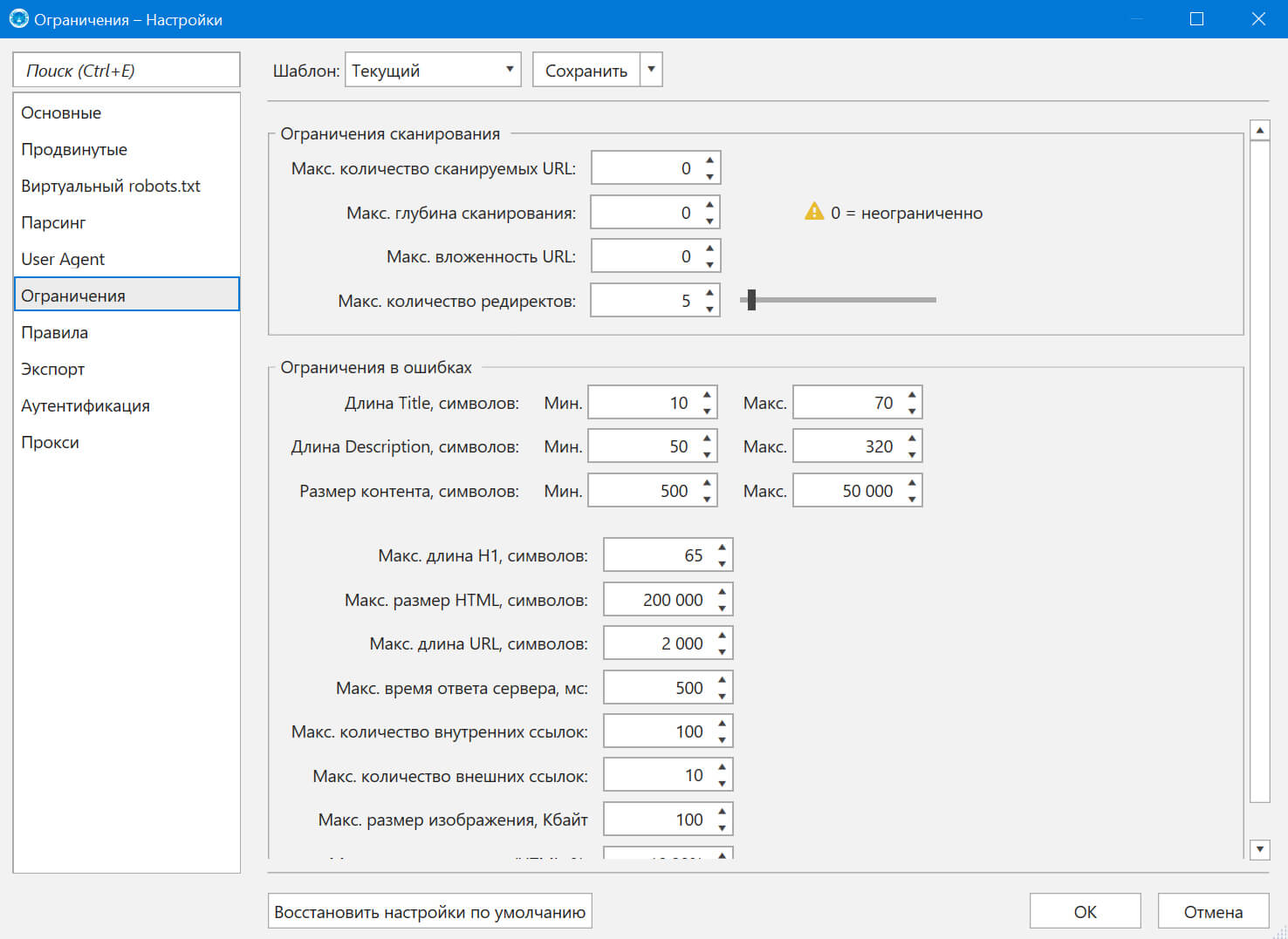 Netpeak Spider — инструмент в первую очередь для профессионалов, поэтому разработчиками предусмотрена возможность настройки практически любых параметров сканирования: