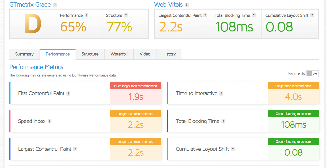 GTmetrix. Отчет чем-то похож на PageSpeed Insights. Но есть дополнительные вкладки где размещено большее количество информации для оптимизации скорости загрузки.