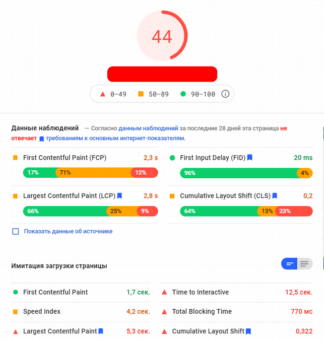 - Cumulative Layout Shift - время до полной стабильности страницы. Или же время до того как все элементы страницы загрузятся в заданных размерах и перестанут друг друга смещать.