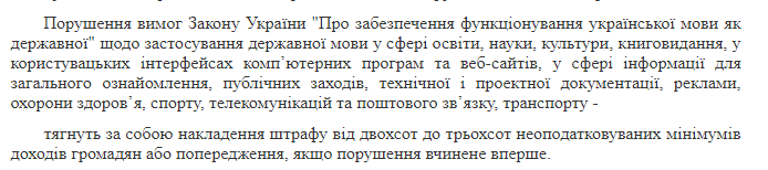 То есть если нарушить данный закон будет наложен штраф в районе 3400-5100 грн.