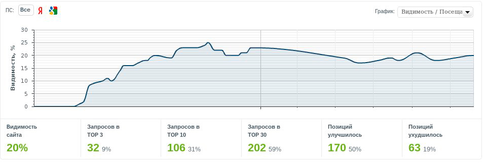 Основним завданням було просунути сайт в топ-10 за пріоритетним переліком ключових запитів, підняти відвідуваність з безкоштовного пошуку та продажі.